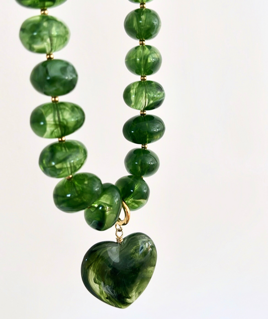 Livia vert - Collier résine coeur