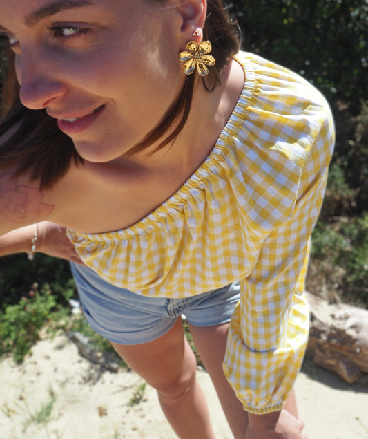 Tifanny - Blouse brodée crème avec dentelle ajourée