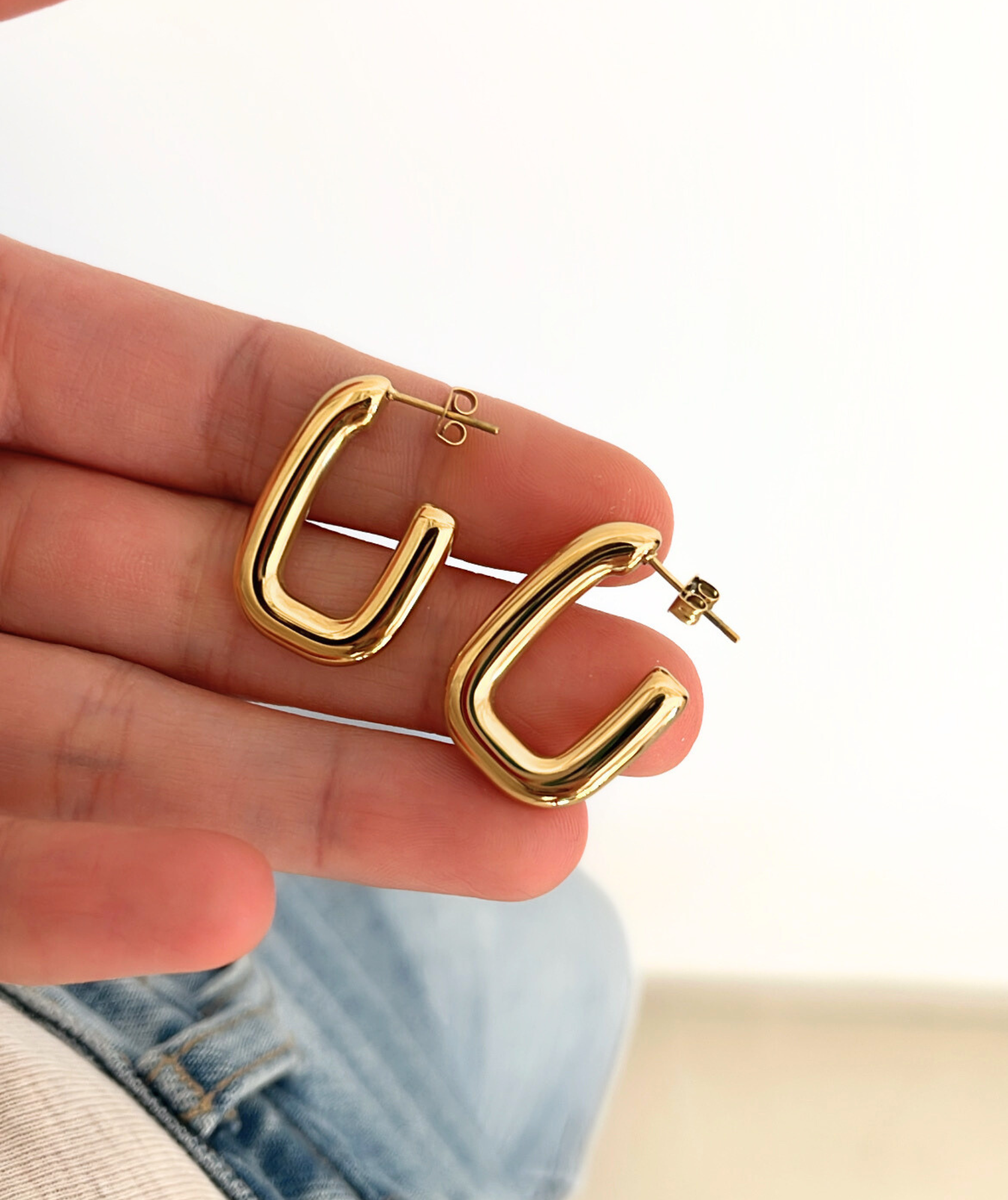 Les créoles revisitées en version rectangulaire ! Ces boucles d’oreilles dorées en acier inoxydable offrent une touche design à tes looks du quotidien. Une pièce forte au format intemporel.