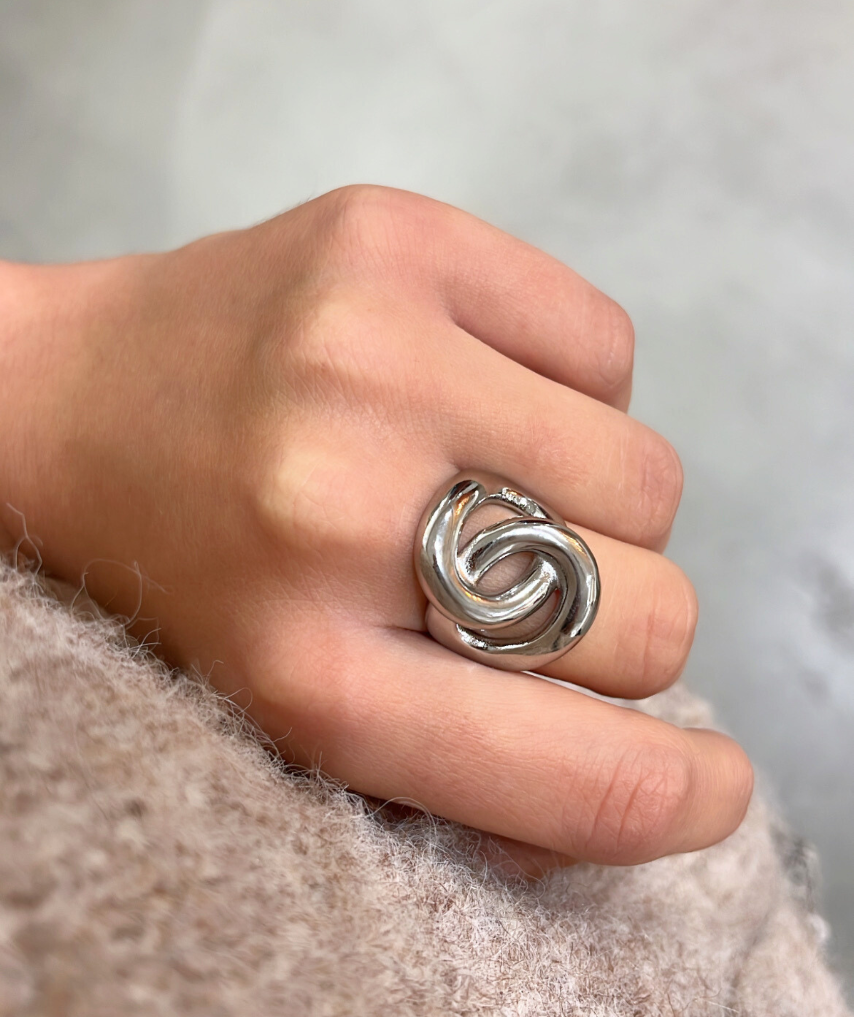 Minimaliste et moderne, cette bague argentée joue avec les volumes grâce à ses deux anneaux entrelacés. Son design apporte une touche d'audace tout en restant intemporel. Fabriquée en acier inoxydable, elle résiste à l'eau et à la vie quotidienne. Cette bague s'accorde parfaitement avec vos tenues casual comme plus habillées. Elle séduira les adeptes de bijoux épurés à l’allure contemporaine.